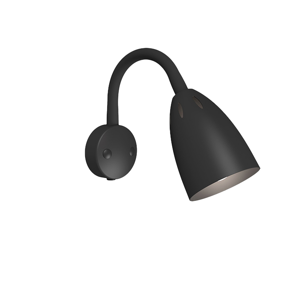Smilla is a trendy and discrete wall lamp. The flexible arm makes the lamp adjustable, in metal that is available in the colors matt black and matt white